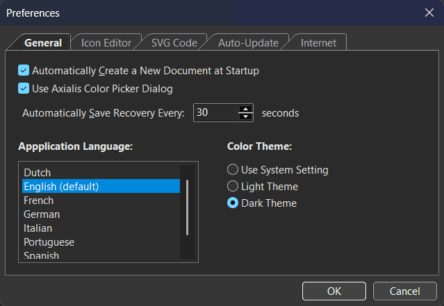 If you prefer a dark interface, you can change the theme by going to , then choosing a color theme under the General tab.