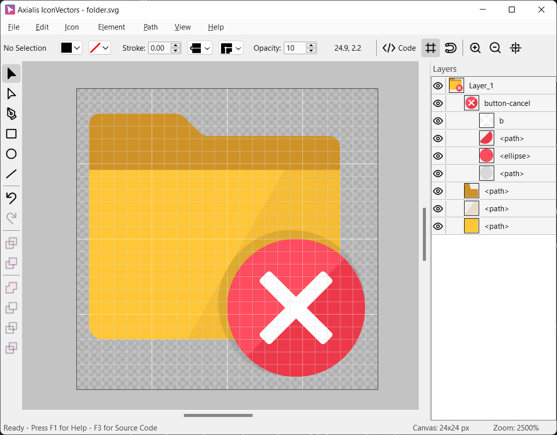 The overlay is added as regular grouped SVG elements, which you can move, scale, or modify like any other part of the icon.