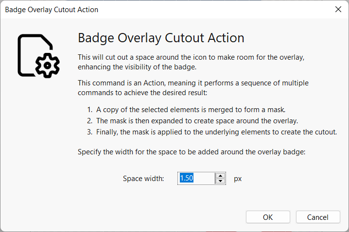 When you add a badge overlay to your icon (such as a small symbol or status marker), part of the original icon may interfere visually with the badge. To solve this, use the Badge Overlay Cutout feature:
