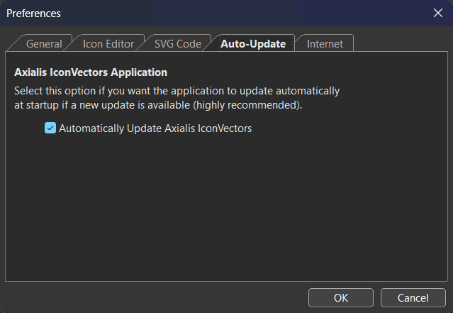 Automatically Update Axialis IconVectors When enabled, IconVectors can check for updates at startup and update automatically if a newer version is available.