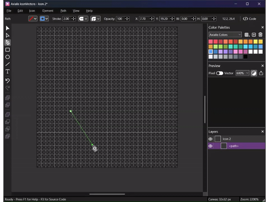 The Pen Tool is designed for creating precise polylines made of straight segments. It is ideal for drawing icons that require clean, geometric outlines or shapes. Once completed, these shapes become editable paths.