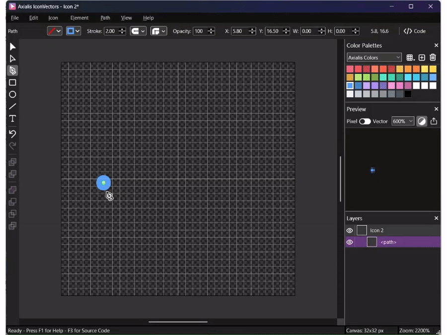 The Preview Panel displays a live preview of the final icon while you draw and edit. It is especially useful for checking legibility at small sizes and testing contrast on light and dark backgrounds.