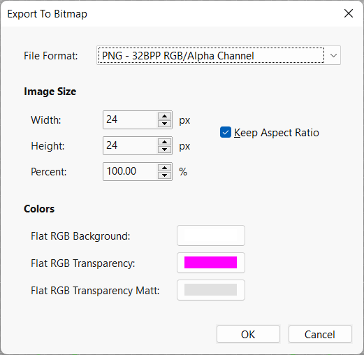 Windows BMP Icons (BMP) - 24BPP Flat RGB Transparency