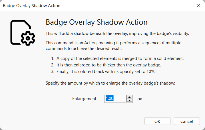 The Add Badge Overlay Shadow command improves the visibility of a badge by adding a soft shadow beneath it: