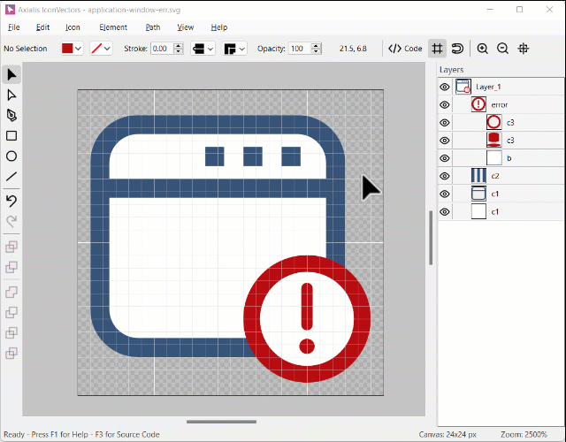 The overlay is added as regular grouped SVG elements, which you can move, scale, or modify like any other part of the icon.
