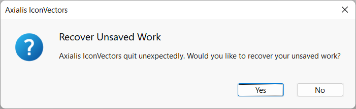 Axialis IconVectors includes an Automatic Recovery System designed to help you avoid data loss in case of unexpected shutdowns or crashes.
